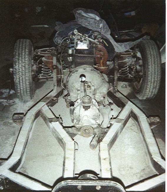 The Chassis needed the whole area around the trailing arm mounts replacing. It had been plated here at least twice. Once the welding was completed we moved the car to a larger workshop to paint the shell. The general idea was to rebuild chassis & body but do minimal work on running gear, leaving that work for when the car was in running order.